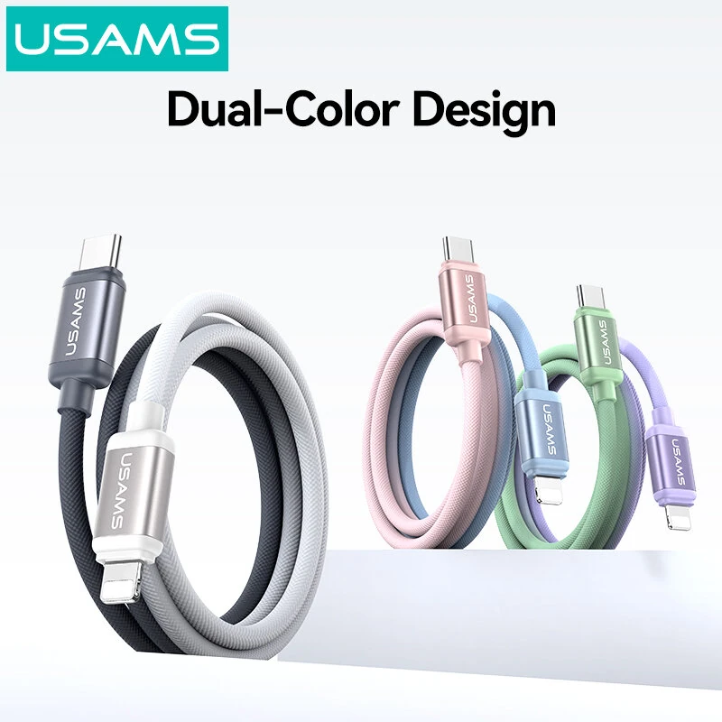 Câble de charge rapide et de transfert de données SJ757 PD 30 W en alliage d’aluminium, USB-C vers Lightning, série bicolore, 1,2 m