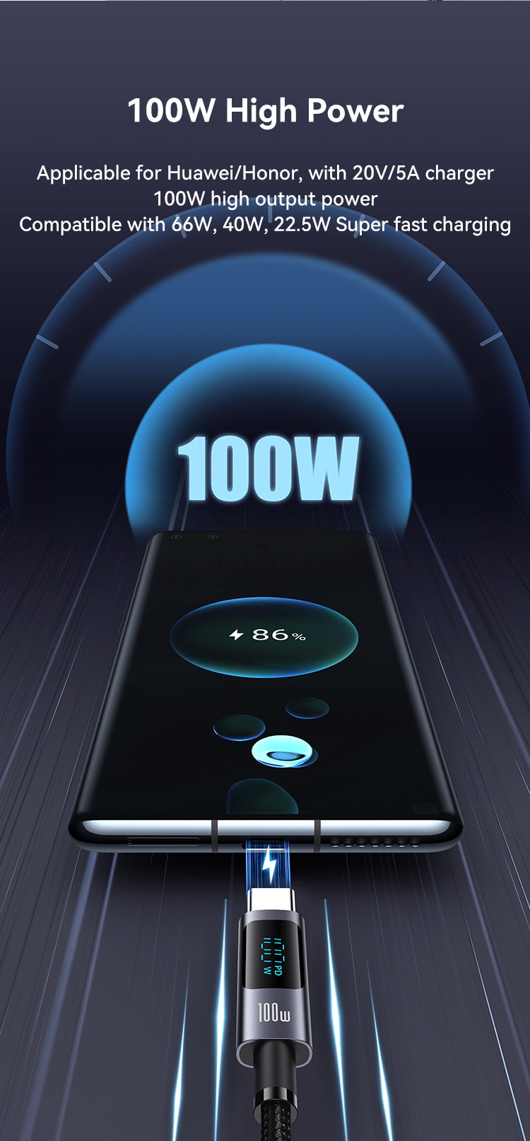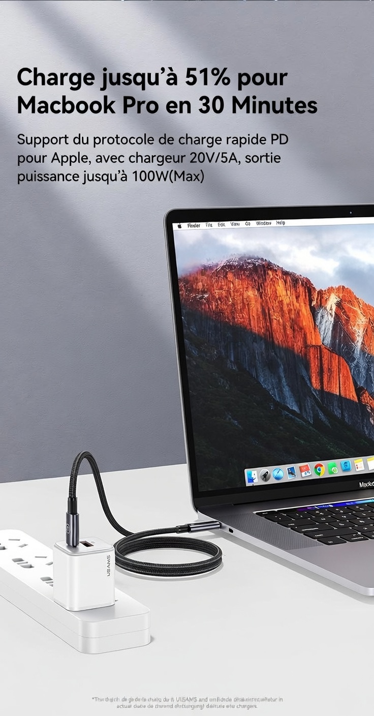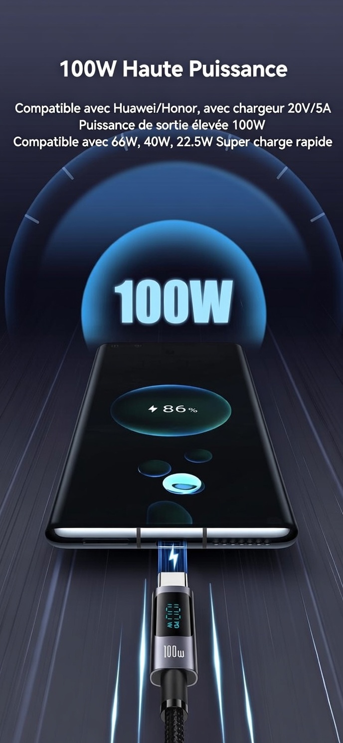 ① Prend en charge la charge rapide PD 100W.