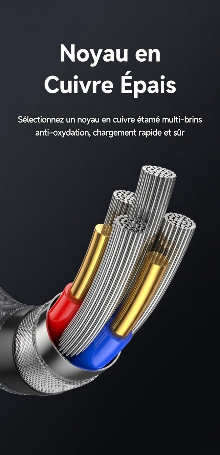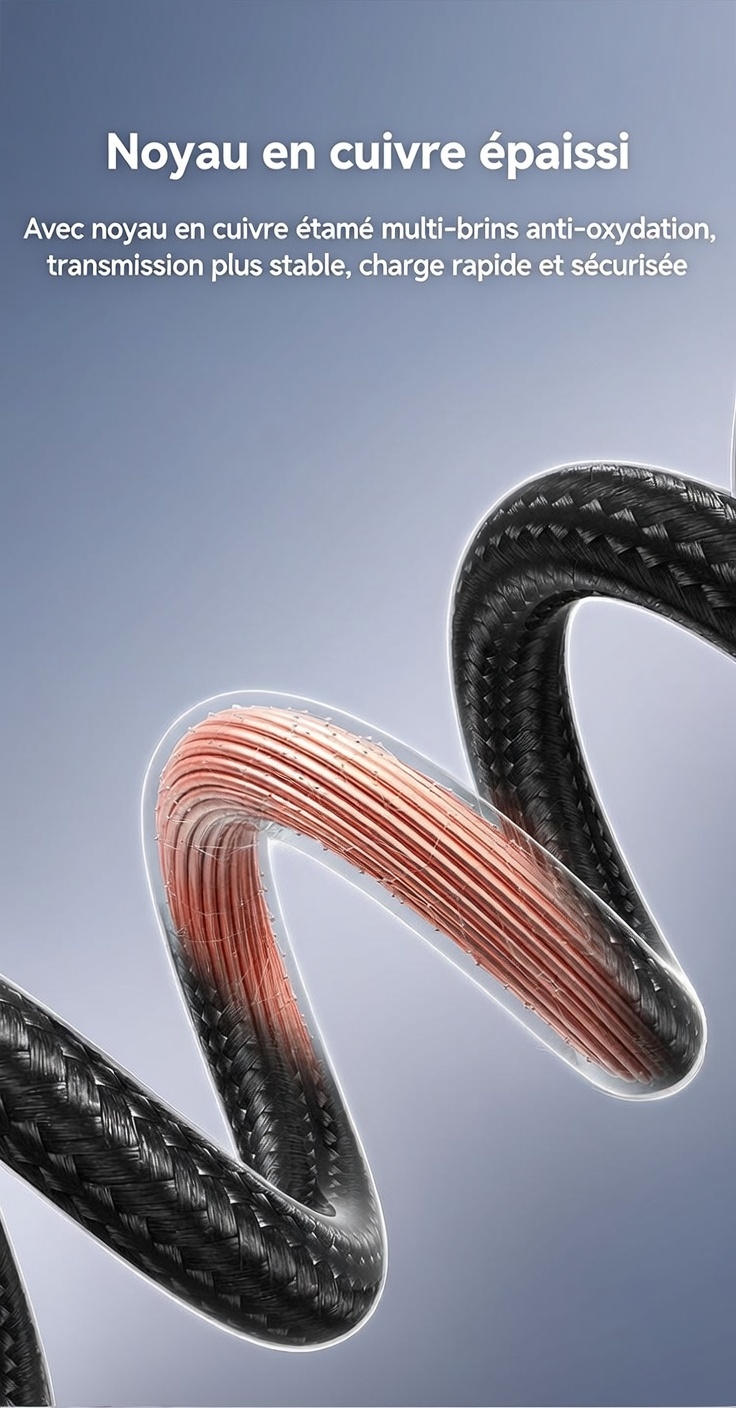 ③ Conception tressée plate et à angle droit, pratique à utiliser.
