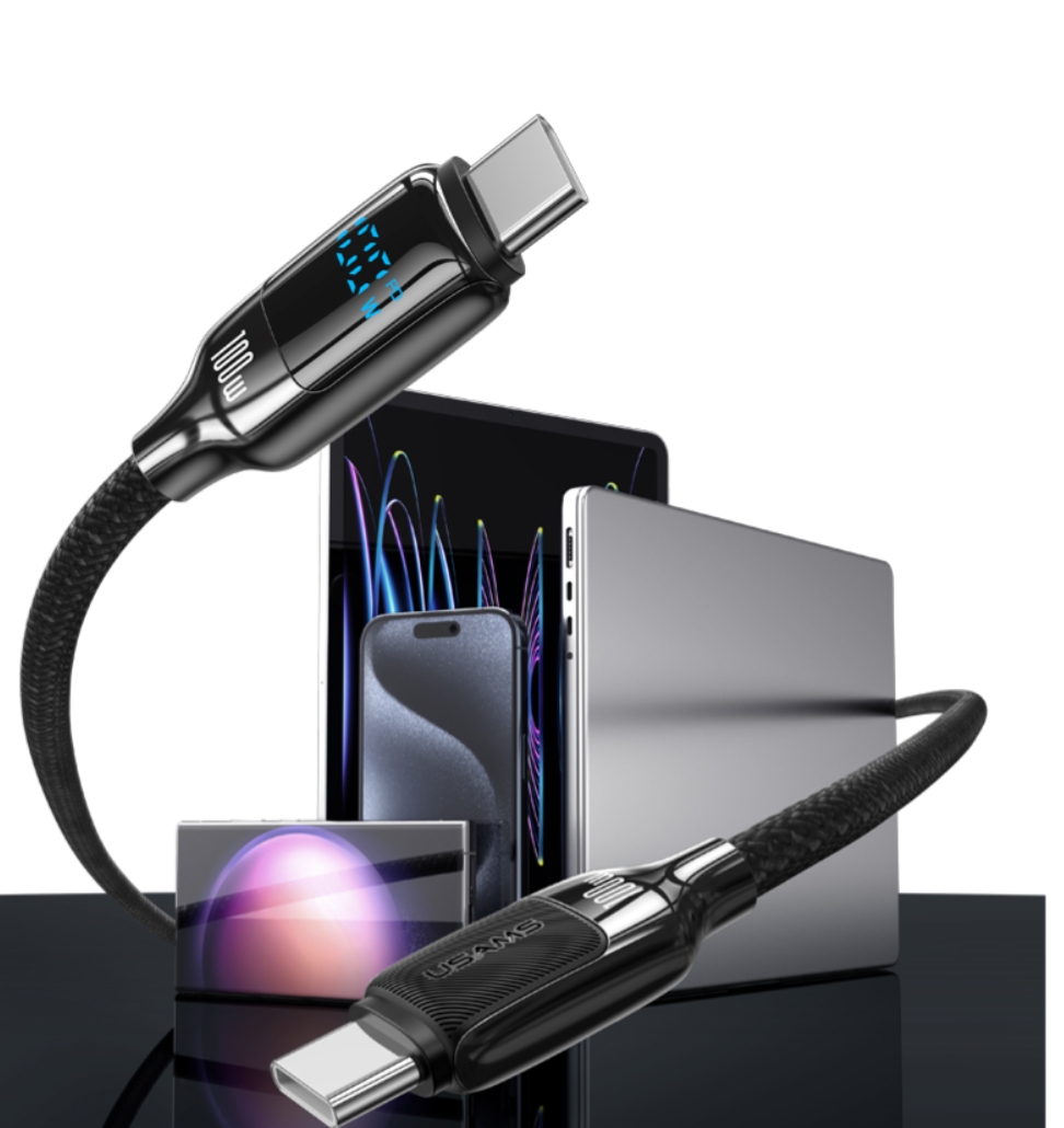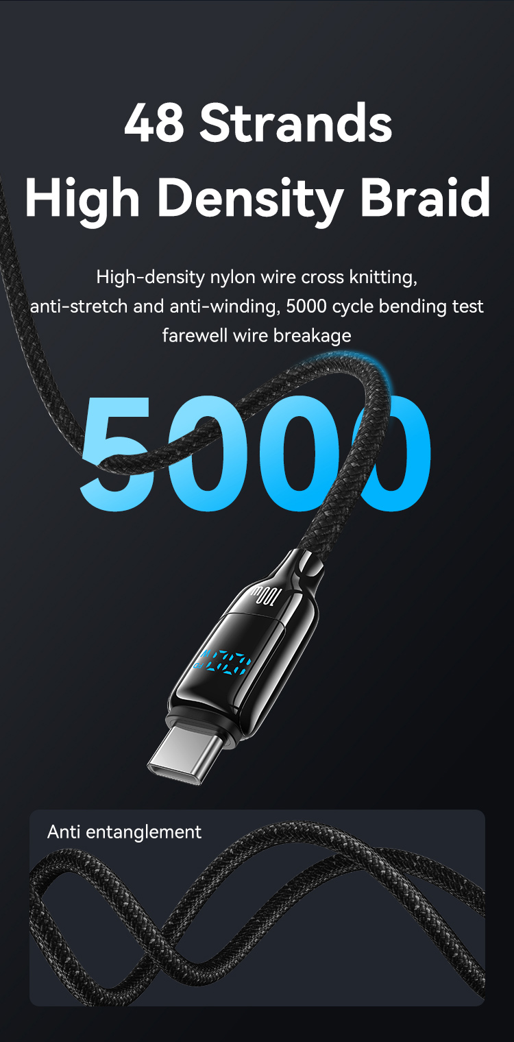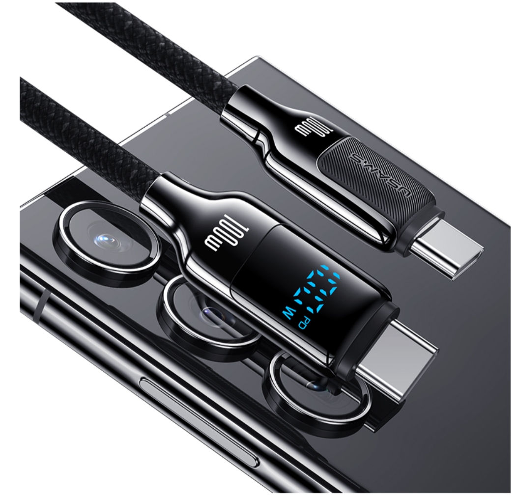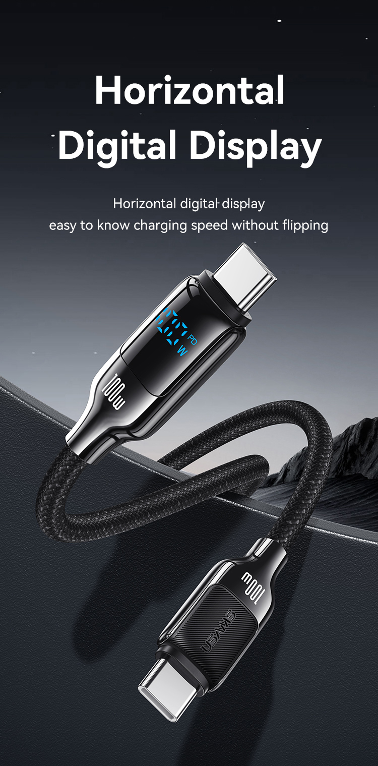 Câble de données de charge rapide 100 W en alliage de zinc avec affichage numérique, USB-C vers USB-C – Série HX 1.2m