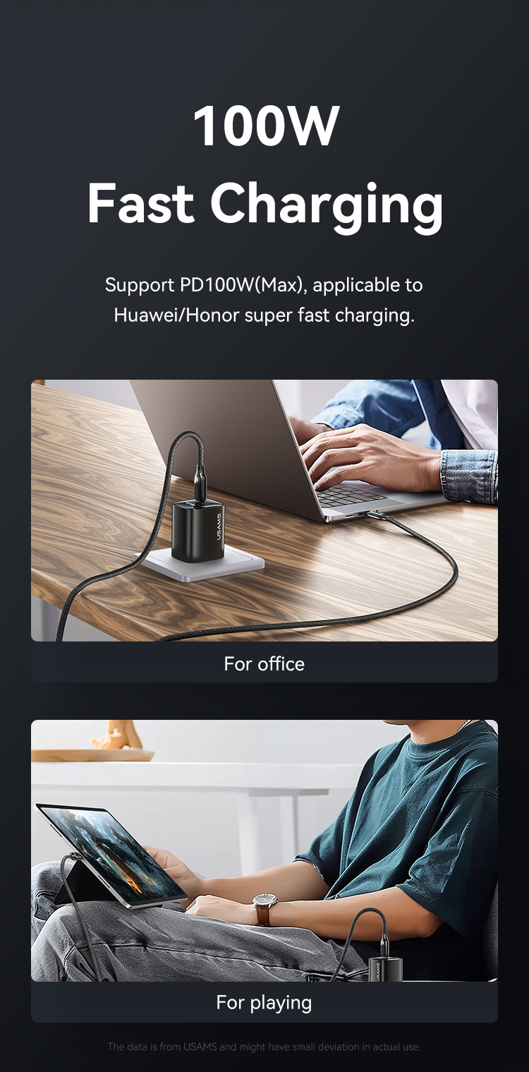 Câble de données de charge rapide 100 W en alliage de zinc, USB-C vers USB-C – Série HX