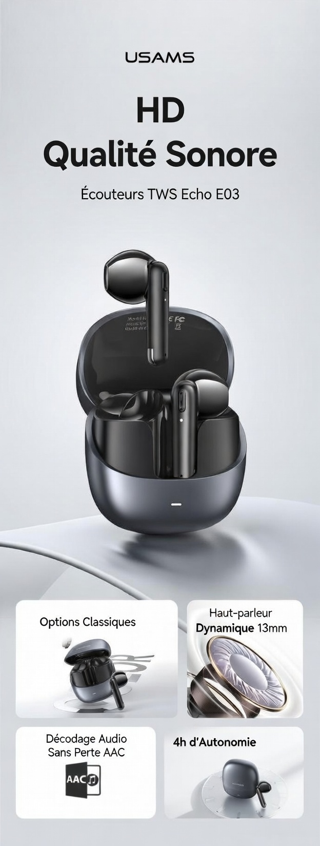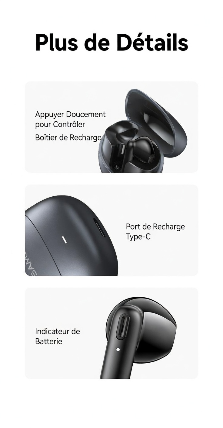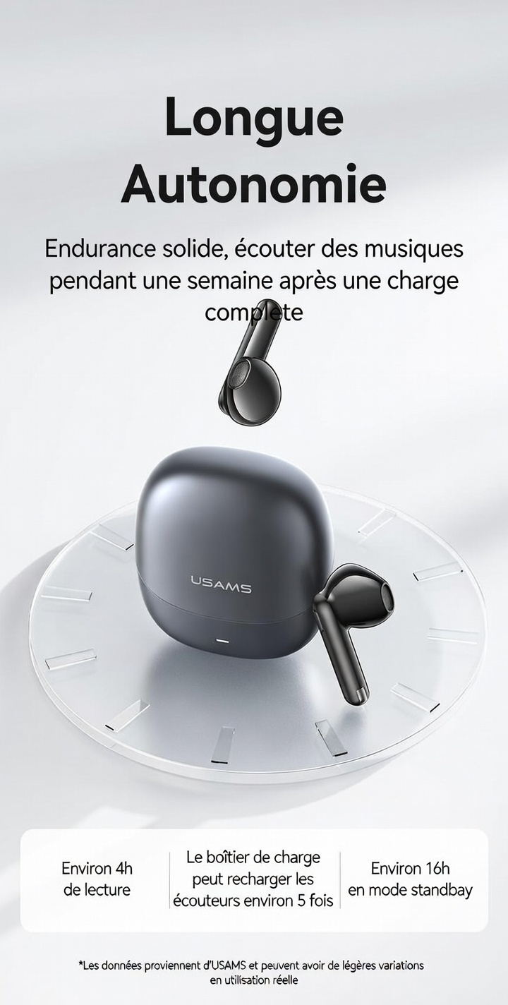 Temps de charge des écouteurs : Environ 1 h