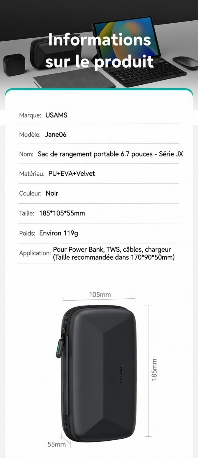 Sac de rangement portable Jane 06 6,7 pouces – Série JX 185 x 105 x 55 mm